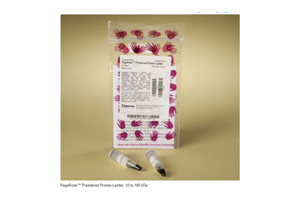 PageRuler Prestained Protein Ladder是種三色分子量標準,含有10種蛋白,分子量范圍為10-170kDa。該分子量標準含有兩條參考條帶,分別為70kDa的橙色參考條帶和10kDa的綠色參考條帶。